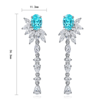 Lüks 925 gümüş yaz küpe ekili Paraiba ile ışık püskül & Diamonds ince uzun zarif tasarım