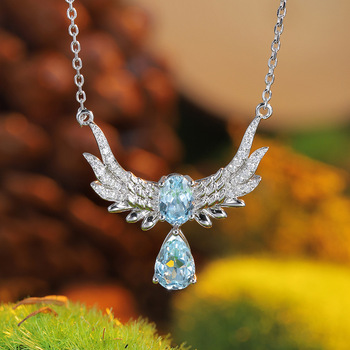 Özelleştirilebilir küçük melek yetiştirme akuamarin kolye niş tasarım 925 gümüş zincir küçük kanatları ince klavikula zinciri çıplak